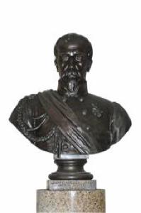 Busto in bronzo su piedistallo marmoreo