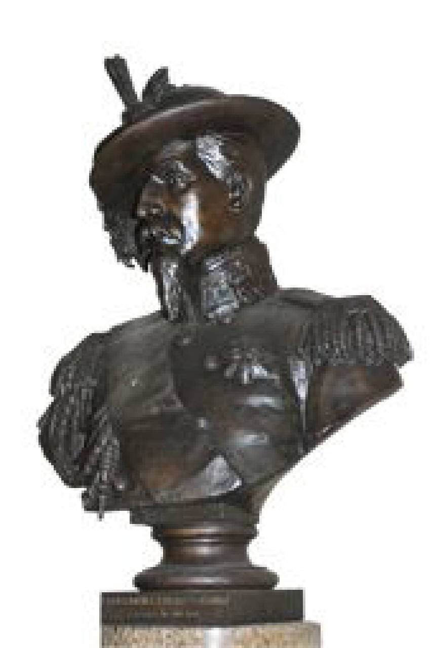 - NOTIZIE STORICO CRITICHE La sala al pianterreno è "dedicata alla celebrazione di Vittorio Emanuele II. I testi dell'epoca la descrivono come una vera e propria "Sala della Riconoscenza", realizzata come una ridotta versione del Pantheon romano, sepoltura del sovrano; l'architettura, infatti, ne riprende la struttura a pianta centrale, movimentata dall'apertura di spazi laterali chiusi da cancellate e la volta, culminante in un oculo decorato da un'elegante stella in ferro battuto. La medesima forma stellata, allusione alla leggendaria frase pronunciata dal re al momento della vittoria ("Havvi proprio una stella anche per l'Italia"), si ritrova anche all'ingresso della sala e nell'intarsio marmoreo pavimentale che circonda la base del suo ritratto bronzeo, che troneggia al centro della sala, opera dell'esperta mano del veneziano Antonio Dal Zotto.(...) Il ritratto è circondato da una serie di otto busti, sempre in bronzo, collocati ai lati di ognuna delle quattro scene dipinte sulle pareti, realizzati dalla mano meno esperta ma volonterosa del catanzarese Salvatore Pisani. I busti raffigurano i volti e i petti gloriosamente ricoperti di medaglie di otto generali caduti in battaglia, collocati a formare un ideale stato maggiore riunito intorno al proprio generale". Questo busto ritrae il Generale di Brigata Cavaliere Alessandro La Marmora, morto nel 1855 in Crimea [Regonelli S., Gli affreschi di San Martino della Battaglia. Il Risorgimento dipinto nel ciclo della Gran Torre, Torino, Allemandi & C. 2011, p. 36].