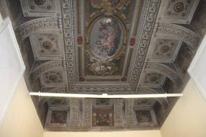 Quadratura rettangolare che si sviluppa attorno al clipeo centrale in quadrati suddivisi da mensoloni.