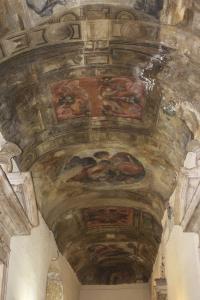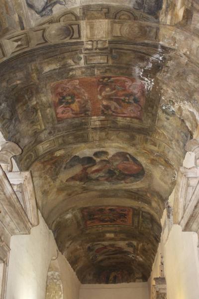 Volta a botte decorata, articolata in cinque sezioni decorative, che prosegue nella parte superiore delle pareti laterali e di fondo.