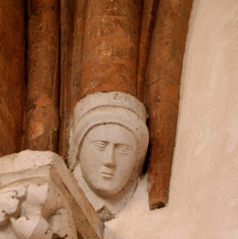 - NOTIZIE STORICO CRITICHE La loggia malatestiana, costruita nel primo quarto del XV secolo quando Pandolfo Malatesta divenne signore di Brescia e fece dell'ala settentrionale del Broletto la propria residenza, è stata restaurata e rimaneggiata più volte in tempi recenti. Tra gli anni Venti e Trenta del Novecento furono riaperti tre dei quattro archi a sesto acuto tamponati in un momento imprecisato della storia e riportate alla luce le ghiere in cotto degli archi oltre che la bifora che si trova al di sopra della loggia. Durante la seconda guerra mondiale, l'ala settentrionale del Broletto fu pesantemente danneggiata dai bombardamenti che colpirono la città e, a partire dal 1946, la zona bombardata venne restaurata e parzialmente ricostruita sotto la direzione dell'architetto Guido Marangoni. L'aspetto attuale della Loggia Malatestiana, dunque, è frutto principalmente di questo intervento post - bellico che, da un lato, ha messo in luce la quarta campata del portico che era nascosta da un fabbricato, ha salvaguardato l'impianto architettonico quattrocentesco così come i materiali scultorei e di decorazione architettonica originali salvatisi dai bombardamenti, dall'altro ha integrato in stile o ricostruito imitando l'originale ciò che è stato distrutto dalle bombe creando un insieme nel quale non è sempre facile distinguere ciò che è pertinente al XV secolo e ciò che è stato ricostruito forse riproponendo un modello originale. Questo aspetto si riscontra, soprattutto, nei peducci figurati che probabilmente sono stati realizzati a metà del Novecento riproducendo gli originali danneggiati.