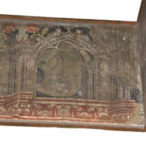 - NOTIZIE STORICO CRITICHE Il fregio pittorico con gli stemmi venne rinvenuto nella Loggia Malatestiana nel 1946 quando, sotto la guida dell'architetto Guido Marangoni, si intrapresero i lavori di restauro per rimediare ai danni dei bombardamenti del secondo conflitto mondiale. Il fregio venne staccato e ricollocato nella sala oggi adibita a sala riunioni della Prefettura.