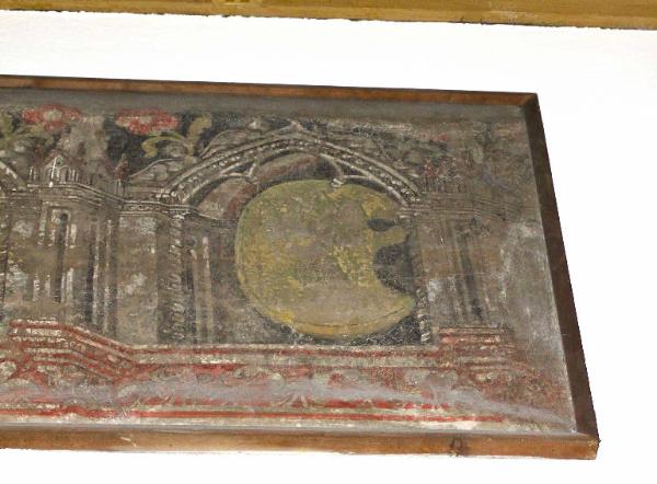 - NOTIZIE STORICO CRITICHE Il fregio pittorico con gli stemmi venne rinvenuto nella Loggia Malatestiana nel 1946 quando, sotto la guida dell'architetto Guido Marangoni, si intrapresero i lavori di restauro per rimediare ai danni dei bombardamenti del secondo conflitto mondiale. Il fregio venne staccato e ricollocato nella sala oggi adibita a sala riunioni della Prefettura.