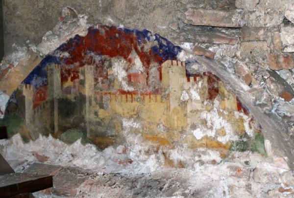 - NOTIZIE STORICO CRITICHE Quando nel 1404 Pandolfo III Malatesta divenne signore di Brescia fece amplialre e modificare l'ala settentrionale del Broletto per trasformarla nella propria residenza che comprendeva anche la cappella di Palazzo dedicata a San Giorgio la cui decorazione fu affidata a Gentile da Fabriano. I documenti attestano la presenza del pittore a Brescia dal 1414 al 1419, anni in cui, stando alle fonti e alle ricevute per i pagamenti conservate nell'Archivio di Fano, realizzò un apparato decorativo straordinario che faceva ampio uso, oltre che della pittura, di finiture con lamine d'oro, d'argento e vetri policromi. La cappella venne distrutta o comunque gravamente compromessa nel 1512 ad opera delle truppe di Gastone de Foix che saccheggiarono la città e la sua condizione peggiorò in relazione agli ampliamenti del palazzo risalenti al XVII e al XIX secolo. Attualmente questo frammento pittorico è ciò che resta dell'antica decorazione realizzata da Gentile da Fabriano.