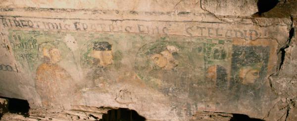 - NOTIZIE STORICO CRITICHE Il primo piano dell'ala meridionale del Broletto, che fu costruita nel secondo quarto del XIII secolo, era occupato da un salone molto grande dove si riuniva il Consiglio di Credenza della Città. Le dimensioni di questo spazio erano imponenti: era lungo quasi 52 metri, largo 14 metri e mezzo ed alto 9 m; era illuminato da grandi finestre polifore, il soffitto era a capriate lignee. Questo vasto ambiente restò in uso fino alla fine del XVI secolo quando fu suddiviso orizzontalmente: nella parte inferiore vennero create delle salette, in quella superiore, posta appena sotto il tetto, fu ricavata una soffitta adibita a vari usi fra cui quello di Archivio Storico Civico. Tra il 1944 e il 1946 i documenti e i materiali dell'Archivio Storico Civico vennero spostati e sulle pareti settentrionale e meridionale del sottotetto fu scoperta una decorazione ad affresco piuttosto vasta che, in epoca medievale, ornava le pareti del Salone del Consiglio della Città di Brescia. Nel 1946 i dipinti sono stati discialbati, ripuliti e consolidati dal restauratore Bertelli che mette in luce due strati sovrapposti di affreschi. Il primo, pertinente alla seconda metà del XIII secolo, raffigura una teoria di cavalieri incatenati che escono dalle porte della città facendo riferimento ai diversi provvedimenti presi dal Comune bresciano per allontanare i nobili di parte ghibellina della città nell'ultimo quarto del XIII secolo. Il secondo strato della decorazione pittorica, invece, è databile a qualche decennio più tardi e comprende la raffigurazione della cosiddetta "Pace di Bagnolo Mella" che, nel 1298, pose fine alle lotte civili fra guelfi e ghibellini stabilendo su Brescia la signoria del Vescovo Berardo Maggi e vari dipinti di soggetto sacro che, nel 1946, vennero strappati dalle pareti per mettere in luce la sfilata dei cavalieri ed oggi sono conservati nella Pinacoteca Civica.