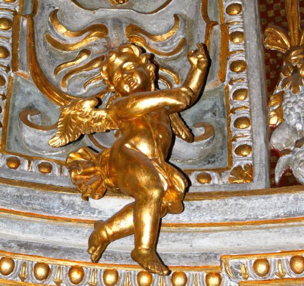 - NOTIZIE STORICO CRITICHE La cappella delle Sante Croci, che fu edificata alla fine del XV secolo ed ampliata e modificata nel Seicento, ha la funzione di custodire il tesoro delle Sante Croci composto da una reliquia della Croce e da pregiate oreficerie che, fin dall'alto medioevo, hanno avuto, per la città di Brescia, una straordinaria importanza religiosa, civile e di devozione. Per rispondere a precise esigenze di tutela e protezione del tesoro, la cappella è suddivisa in due ambienti ciascuno protetto da una cancellata. La prima parte della cappella è a pianta quadrata, si affaccia sul transetto sinistro ed è protetta da una cancellata che ne chiude metà dell'altezza, sul lato orientale ospita l'altare dietro il quale è inserito un imponente cancello che si sviluppa per tutta l'altezza della cappella ed è murato nelle pareti perimetrali. Tramite un cancello si accede alla seconda parte della cappella delle Sante Croci che è a pianta semicircolare ed è deputata a conservare il tesoro che è custodito in un apposito forziere. La volta e le pareti di entrambi gli ambienti sono impreziosite da una decorazione a stucco a rilievo realizzata dal decoratore ticinese Andrea Colomba.