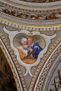 - NOTIZIE STORICO CRITICHE La cappella delle Sante Croci, che fu edificata alla fine del XV secolo ed ampliata e modificata nel Seicento, ha la funzione di custodire il tesoro delle Sante Croci composto da una reliquia della Croce e da pregiate oreficerie che, fin dall'alto medioevo, hanno avuto, per la città di Brescia, una straordinaria importanza religiosa, civile e di devozione. Per rispondere a precise esigenze di tutela e protezione del tesoro, la cappella è suddivisa in due ambienti ciascuno protetto da una cancellata. La prima parte della cappella è a pianta quadrata, si affaccia sul transetto sinistro ed è protetta da una cancellata che ne chiude metà dell'altezza, sul lato orientale ospita l'altare dietro il quale è inserito un imponente cancello che si sviluppa per tutta l'altezza della cappella ed è murato nelle pareti perimetrali. Tramite un cancello si accede alla seconda parte della cappella delle Sante Croci che è a pianta semicircolare ed è deputata a conservare il tesoro che è custodito in un apposito forziere. La volta e le pareti di entrambi gli ambienti sono impreziosite da una decorazione a stucco a rilievo realizzata dal decoratore ticinese Andrea Colomba.