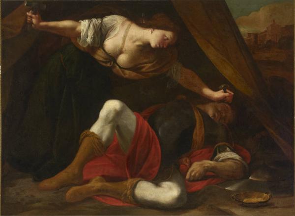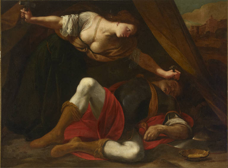 - NOTIZIE STORICO CRITICHE Per il dipinto ad oggetto, di notevole tenuta stilistica, si può avanzare un riferimento all'ambiente del pittore Carlo Cignani (Bologna 1628 - Forlì 1718), figura di spicco del Seicento emiliano, come sembrerebbero indicare alcune caratteristiche compositive e pittoriche dell'opera. B. Buascaroli Fabbri (Carlo Cignani. Affreschi, dipinti, disegni, 1991, p. 281), in particolare, segnala tra i dipinti scomparsi dell'artista uno raffigurante l'episodio di "Jaele e Sisara" conservato al Museè des Beaux Arts di Caen, fino alla seconda guerra mondiale.\nPotrebbe però anche trattarsi di una copia dal Cignani, di notevole fattura. In tal senso è nota l'attività dell'allievo Marcantonio Franceschini (Bologna, 1648 - 1729) (cfr. I sensi e le virtù, catalogo dellla mostra, a cura di C. Giardini, Pesaro Palazzo Ducale, 2000).\nL'opera deve essere stata, in tempi non lontanissimi, fatta oggetto di restauro dal momento che versa in buone condizioni conservative, però non è stato possibile rinvenire alcuna relazione tecnica in merito.\nIn attesa di migliori riscontri, anche di carattere documentario, in particolare sui tempi di arrivo del dipinto nelle raccolre rodensi, si preferisce riferirlo all'ambiente del pittore emiliano.