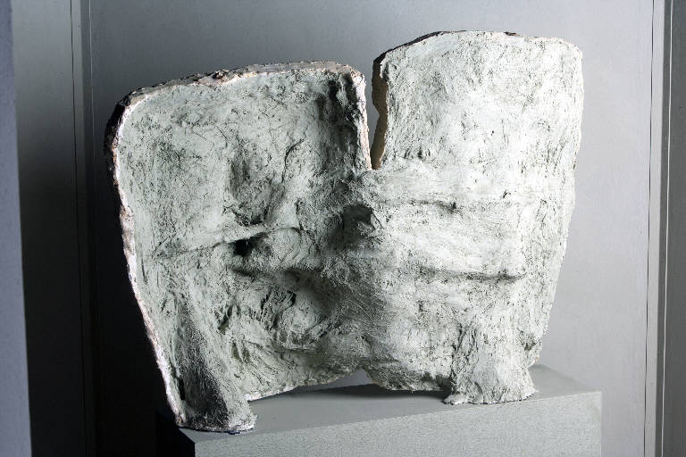 Scultura costituita da due maschere in gesso patinato