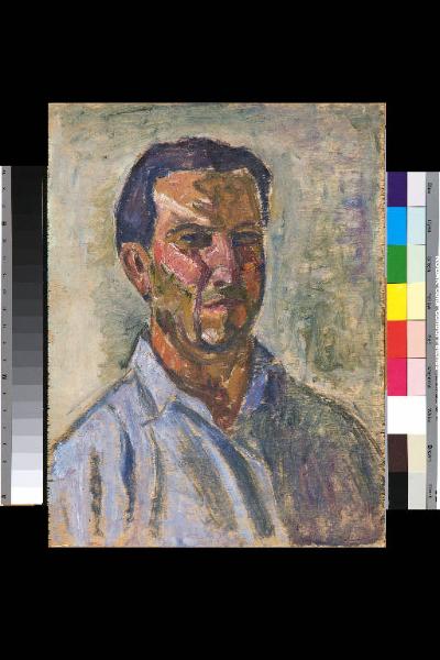 - NOTIZIE STORICO CRITICHE Autoritratto dell'artista. "Se confrontiamo gli Autoritratti dipinti intorno al 1940 con i ritratti precedenti, notiamo un profondo mutamento di stile. Alla fisionomia ariosa delle opere della metà degli anni Trenta subentra ora una struttura quasi scultorea, dove testi e busti sembrano scolpiti nel legno o nella pietra. La figura, innervata di linee rigide e perentorie, non ha più quell'aspetto trasognato, impressionistico, che mostrava prima, ma al contrario sembra testimoniare una volontà di persistenza, di durata, di perennità". [Pontiggia E., "Omaggio a Oreste Marini. L'uomo - l'artista - il professore", Medole 2010, p. 75]