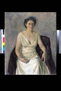 Il ventaglio (Ritratto della moglie Albina). figura femminile seduta