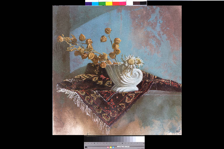 - NOTIZIE STORICO CRITICHE "Magrograssi non può che attenersi, nel suo processo espressivo, alle procedure lente e laboriose della mimesi estrema, che unica consente all'oggetto (di natura o manufatto, poco importa) di sfuggire alle emozioni individuali. (...) Particolari, piccoli spazi, misure calpestate: Magrograssi ci conduce in una natura così vicina che non la vediamo, in un luogo così immobile, sospeso, che nella sua verità diviene incanto, sogno, utopia. Come se la verità non fosse nelle cose che vediamo, ma in quelle che lasciamo perdere e trascuriamo. (...) Allora il taglio iconografico che ha il sapore della fotografia si fa attuale, la scansione evocativa del frammento è un particolare, colto con una lunga attenzione, con una lunga posa, diremmo per stare alla similitudine. Non un'istantanea, ma una visione raccolta minuzia per minuzia, traccia per traccia, segno per segno" [Corradini M., "Clara Magrograssi. Incanto e stati d'animo", Medole 2004, pp. 9-11].\nIl quandro è stato esposto anche a Bruxelles, per questo sul verso presenta il timbro della Dogana di Ponte Chiasso.