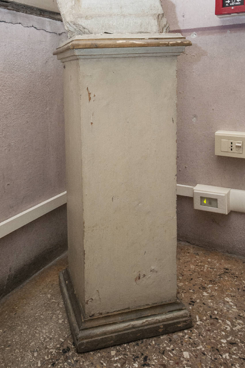 - NOTIZIE STORICO CRITICHE Si tratta di una serie di manufatti di fattura corrente prodotti in serie riferibili ad una produzione locale pienamente ottocentesca. Si ipotizza facciano parte dell'allestimento in stile neoclassico del conte Tadini e quindi realizzati indicativamente tra il 1826, anno di conclusione dei lavori a palazzo, e il 1849. Nella Galleria dell'Accademia le basi sono usate come appoggio per sculture e oggetti di vario tipo.