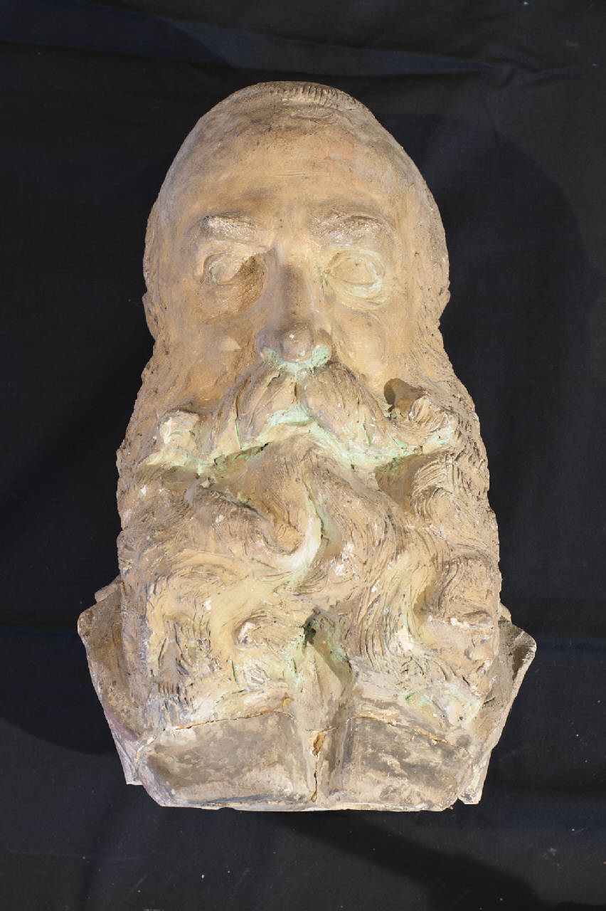- NOTIZIE STORICO CRITICHE L'opera in esame è riferibile alla produzione di primo Novecento dello scultore bergamasco Giuseppe Siccardi, come confermano sia la trattazione del volume che la libertà della sperimentazione materica. La scultura, che raffigura il volto di Giovanni Battista Zitti, è realizzata in terra cruda patinata, ovvero quella tecnica che permette di imitare il bronzo senza cuocere l'oggetto in fornace ma lasciandolo essiccare naturalmente al sole.\nAllievo di Ponziano Loverini all'Accademia Carrara di Bergamo, nel 1906 Siccardi vinse una borsa di studio che gli permise di soggiornare a Roma e frequentare la scuola di nudo di Ettore Ferrari. Negli anni della sua formazione avvertì il fascino del simbolismo e rivelò tendenze liberty che non lo abbandonarono più. Insegnò per dieci anni alla Scuola d'arte Andrea Fantoni di Bergamo dedicandosi poi alle commissioni, che gli pervennero numerose da enti pubblici e religiosi nonché da galleristi e collezionisti. Fra le sue sculture vanno segnalati diversi monumenti ai Caduti mentre fra le opere di carattere civile meritano una citazione le statue scolpite per la facciata del Palazzo di Giustizia a Bergamo. Sue opere sacre di ottima fattura figurano anche in molte chiese del territorio.\nLa scultura, che risulta presente in Accademia Tadini già 1915 come conferma l'inventario redatto in quell'anno, fa parte della collezione di Giovanni Battista Zitti raccolta nelle sale della villa "Caprera" a Bossico donata all'istituzione dalla cognata Teresa Banzolini Storti proprio nel 1915.