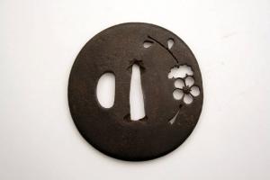 - NOTIZIE STORICO CRITICHE In Giappone l'elsa è detta "tsuba". La sua funzione primaria è quella di fare in modo che la mano di chi impugna la spada non finisca sulla propria lama, oltre a bilanciare la spada e a proteggere la mano dalla lama dell'avversario.\nIndirettamente, gli tsuba servivano anche a mostrare lo stato sociale e il gusto personale e, come per altri oggetti d'uso, divennero presto un mezzo d'espressione artistica.\nDal XIX secolo, quando la spada e i suoi accessori divennero più decorativi che funzionali, e ancor più dal 1878, a seguito della proibizione di portare la spada, gli tsuba erano prodotti come oggetti da collezione favoriti dagli occidentali, che li vedevano come una originale e nuova forma d'arte. Molti di questi oggetti raggiunsero infatti l'Europa già nell'Ottocento.\n\nQuello di ciliegio è forse il fiore preferito dai giapponesi. Esso è ampiamente citato in letteratura e rappresentato in arte. Soprattutto, il fiore di ciliegio era un simbolo caro ai samurai, perché, cadendo improvvisamente, nel pieno della fioritura, ricordava la sorte del guerriero caduto improvvisamente in battaglia.\nIl crisantemo è simbolo della famiglia imperiale giapponese.\n\nLo stile è quello detto "degli armaioli" katchushi tipico della scuola Umetada.