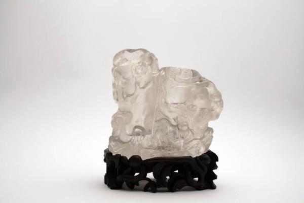 Scultura in cristallo di rocca, riproducente due montagne unite a formare due vasi. L'oggetto è decorato a basso rilievo con un cervo e una gru nei pressi di un pino e un fungo (lingzhi).