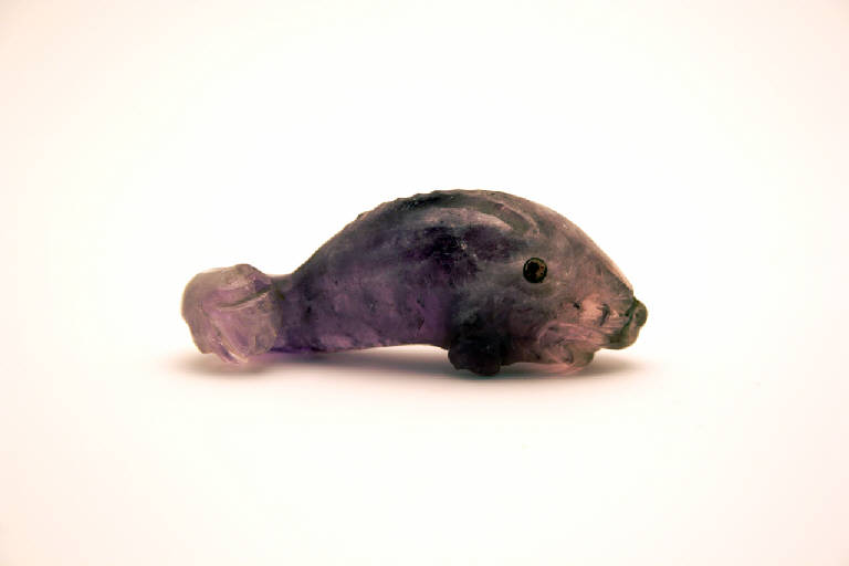 Scultura in ametista raffigurante una carpa. Potrebbe trattarsi di una bottiglietta da fiuto.