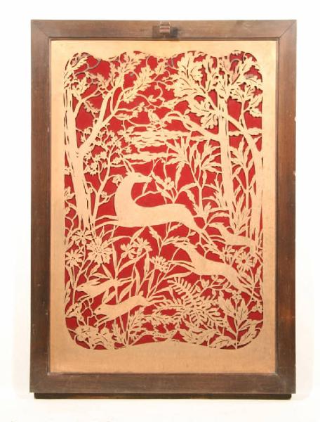 Copricalorifero in rame sbalzato con figurazioni di gazzelle, uccelli e alberi