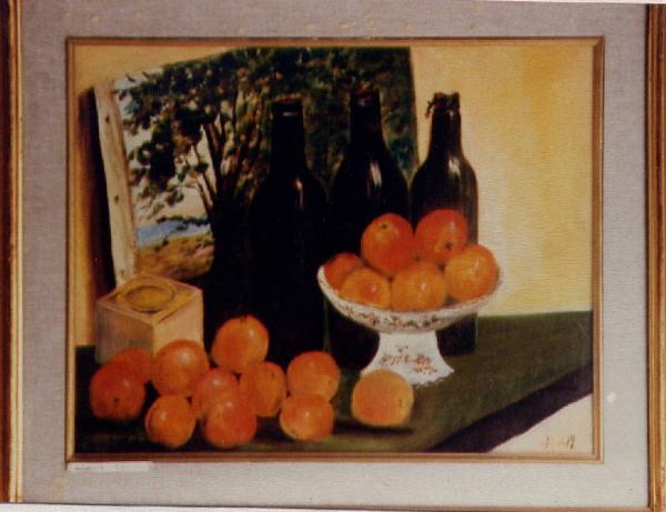 Natura morta con arance. arance e bottiglie