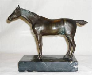 Statuetta di cavallo in posizione stante, con collo proteso in avanti e coda tesa