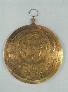 Astrolabio in ottone a circolo completo con anello di sospensione.