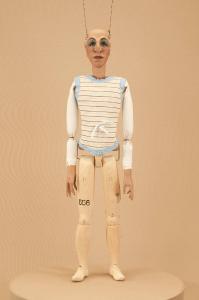 Testa di legno di tiglio fissata al corpo tramite ferro, occhi di vetro. Corpo grande in abete. Gambe unite al bacino tramite bordione in ferro, ginocchia ad incastro mobile. Mani in tiglio con dita scolpite e separate.