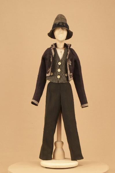 Costume da popolano di foggia ottocentesca composto da pantaloni, giacca, gilet e cappello. Si completa con un cappello che ha il codice C 07758.