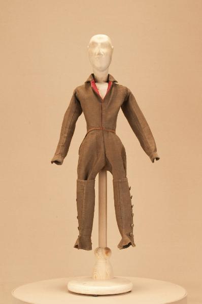 - NOTIZIE STORICO CRITICHE Il costume si completa con collo e polsi. Si presume che il costume, per foggia e dimensione, appartenesse allo spettacolo "Majno della Spinetta" ambientato in epoca napoleonica. Gli spettacoli della Compagnia Carlo Colla che trattano il tema del brigantaggio nell¿Italia settentrionale e meridionale, in cui veniva utilizzato questo costume, erano in repertorio già dal 1863, come si evince dal libro mastro 1863-1879. I titoli erano "Majno della Spinetta", "I misteri del brigantaggio" e "I briganti della Callabria"(sic). Nel 1904 quest¿ultimo diventa "Caruso e i suoi briganti". Da questo spettacolo traggono origine nel 1907 l¿azione coreografica in 7 quadri "L¿umile eroe" con la musica di Corrado Gualtieri e nel 1918 "L¿asino e il Curato", commedia in due atti, entrambe a firma di Carlo II Colla.