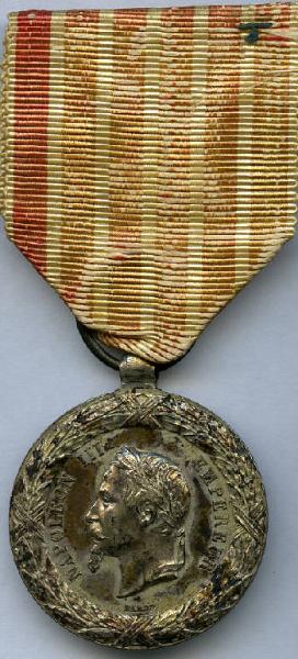 Medaglia commemorativa francese della Campagna d'Italia del 1859. Napoleone III; corona d'alloro