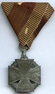 Croce di guerra austriaca (Karl-Truppenkreuz). GRATI / PRINCEPS ET PATRIA / CAROLVS IMP.ET REX; VITAM ET SANGVINEM / MDCCCCXVI