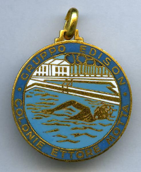 Medaglia ricordo Colonie Ettore Motta Gruppo Edison. Colonie Ettore Motta; piscina con nuotatore