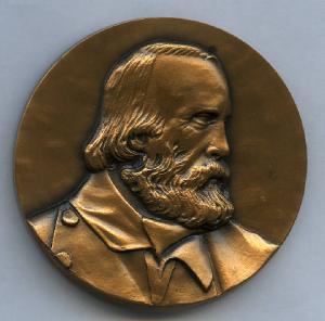 Medaglia commemorativa del Centenario della morte di Giuseppe Garibaldi. Giuseppe Garibaldi; equipaggiamento di volontari garibaldini
