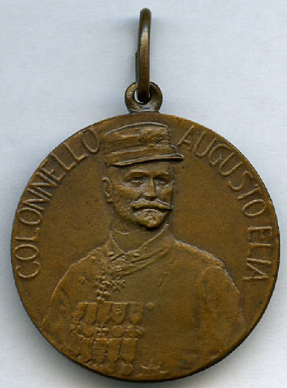 Medaglia in ricordo del colonnello Augusto Elia (appartenente a Guido Sylva). Augusto Elia; corona d'alloro e quercia