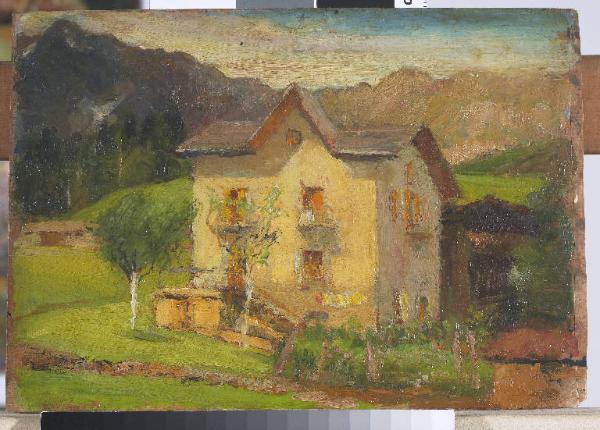 - NOTIZIE STORICO CRITICHE Il sole illumina l'abitazione, rendendola il centro dell'interesse del pittore che valorizza il connubio armonioso tra uomo e natura.
