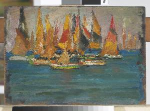- NOTIZIE STORICO CRITICHE Il gruppo di barche cattura l'attenzione dell'artista che, con grande freschezza e rapidità, coglie i colori vivaci delle vele e gli effetti cangianti dell'acqua.