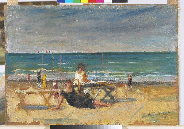 - NOTIZIE STORICO CRITICHE Sovente Antonio Pasinetti trascorre l'estate a Fano che ispira l'artista nell'esecuzione di rapidi bozzetti raffiguranti l'atmosfera rilassata dei villeggianti.