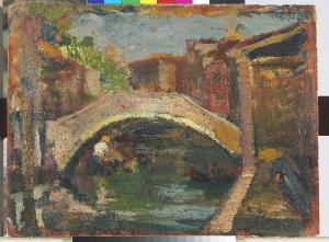 - NOTIZIE STORICO CRITICHE Il bozzetto ritrae uno scorcio di Venezia con tratti estemporanei e macchie di colore.