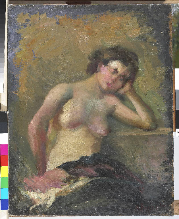 - NOTIZIE STORICO CRITICHE La tela, priva di datazione, potrebbe essere assegnata ad un periodo compreso tra il 1920 e il 1940, periodo in cui l'artista procede con l'impiego di alcune modelle per studiare l'anatomia e la postura della figura umana. Presso l'archivio della PInacoteca Pasinetti di Montichiari (Bs) sono custodite fotografie che confermano tale modus operandi.