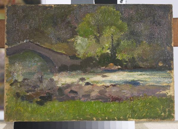 - NOTIZIE STORICO CRITICHE L'artista coglie il brano paesistico secondo un punto di vista ribassato che valorizza il fiume e il ponte sovrastante, il resto della composizione è risolto con campiture piuttosto uniformi.