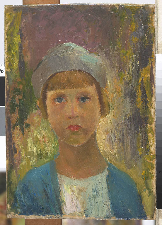 - NOTIZIE STORICO CRITICHE Il primo piano è dedicato al ritratto estemporaneo di una bambina di cui Antonio Pasinetti traccia i caratteri salienti risolvendo lo sfondo con macchie di colore che creano un'ambientazione indistinta.