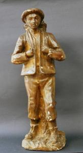 - NOTIZIE STORICO CRITICHE In abiti di primo Novecento, questo modello di figura maschile reca sulle spalle la gerla, caratteristica cesta in vimini utilizzata per il trasporto del cibo nelle valli bergamasche.