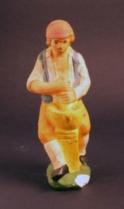 Statuetta rappresentante un uomo seduto in atto di fare la polenta.