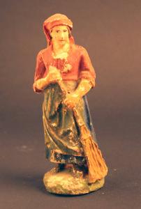 Statuetta rappresentante una donna intenta a pulire il pavimento con una scopa.