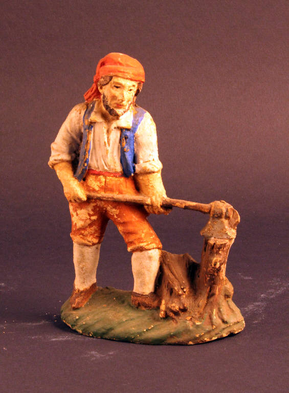 Statuetta rappresentante una figura maschile intenta a spaccare la legna.