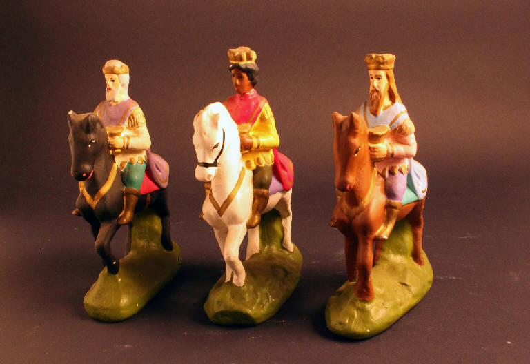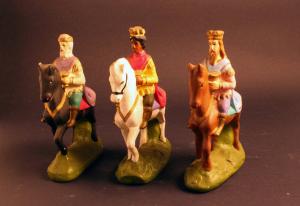 Tre statuette rappresentanti i Re Magi a cavallo.