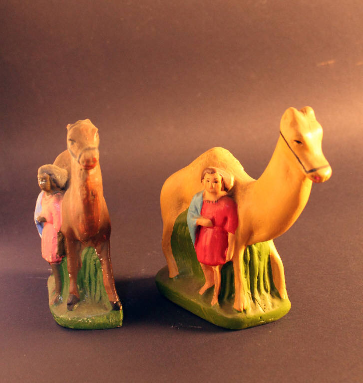 Coppia di statuette rappresentanti ciascuna un cammelliere posto accanto ad un cammello.