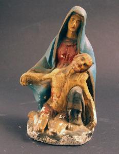 Statuetta rappresentante la Pietà: la Madonna addolorata sostiene il corpo di Gesù Cristo.