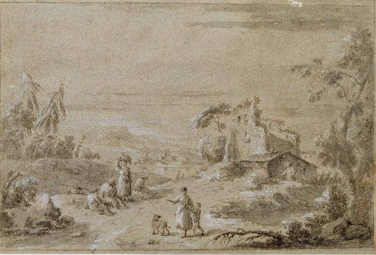 - NOTIZIE STORICO CRITICHE Il disegno appartiene ad una serie di quattro paesaggi eseguiti con la medesima tecnica e nel medesimo periodo (1760 ca.) ed aventi un'unica provenienza, dato indicativo della rarità dal punto di vista collezionistico. (Notizie storico-critiche relative al progetto di catalogazione del 2005).