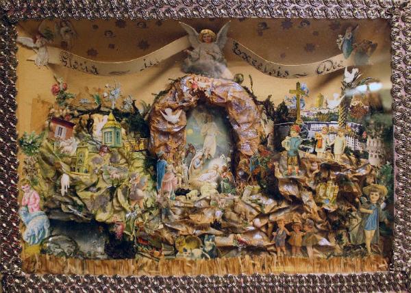 - NOTIZIE STORICO CRITICHE Si tratta di un particolare presepio interamente realizzato in carta ed allestito all'interno di una cornice decorata da una passamaneria dorata.\nSi tratta di un manufatto di non particolare pregio storico artistico ma interessante per la devozione popolare che lo caratterizza: sembra, infatti, che tale bene sia stato tramandato per decenni da famiglia a famiglia.\nIl presepio è giunto al Museo in seguito alla donazione effettuata dal signor Poloni Leone di Bergamo.