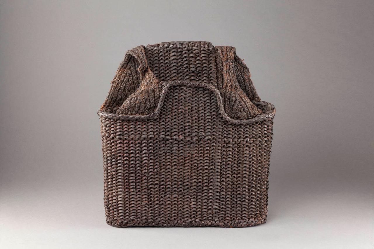 Pettorale di corazza in fibre vegetali intrecciate. Le fibre della parte centrale sono più spesse rispetto a quelle che formano le spalline.